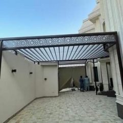 - مظلات وبرجولات جلسات مدمجة مع الحديد المجدول.