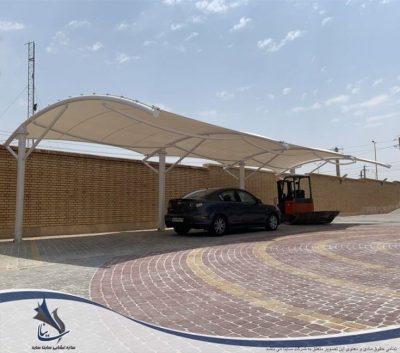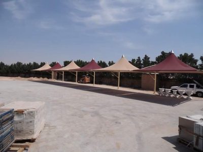 - تغطية مظلات المواقف عن طريق مظلات الشد الإنشائي.