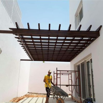 - مظلات جلسات بلون خشابي يتفاوت سعر المتر المربع مابين 250 ريال و 300 ريال.